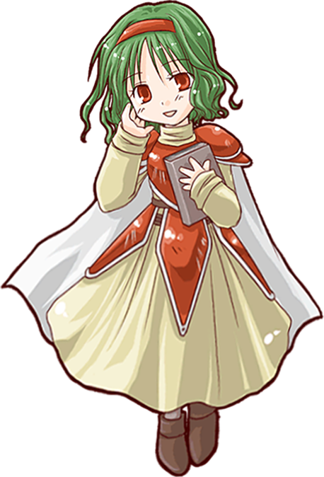 緑の髪、赤い瞳。ウェーブヘアを赤いヘアバンドでまとめている。容姿としては美人の類。バランスのいいスタイルをしているが、騎士としては少々頼りない。