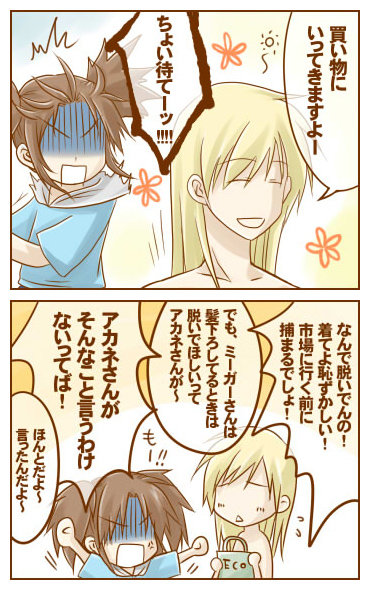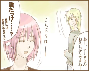 - アカネは現在ムテルア王国にて勤めているため時々しか顔を合わせないが関係は良好。無自覚に仄かに想いを寄せているが自他共にそんな様子には全く気付けない程、態度に変化がない。