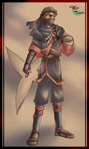 暗殺依頼専門の忍びとして教育されたイズルビ屈指の暗殺マシーン。戦闘能力は非常に高く、無駄のない動きでサクっと仕事をこなせる技術と、臨機応変に動く頭脳を持つ。戦闘術、格闘術、武器や道具の扱い、忍術までオールマイティ。