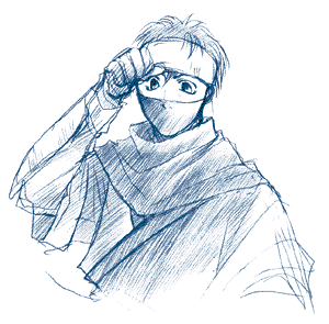 黒い髪、黒い目。短髪。やや三白眼。長身、細身。覆面、額当て、普通の黒装束。