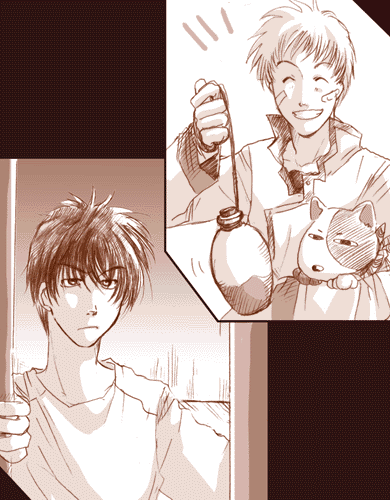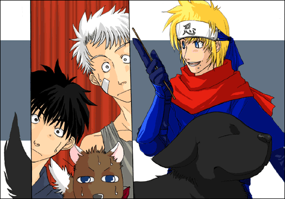 - サルトビと半蔵が大群の物怪を相手に術なしで戦っている所を見、その強さに男の浪漫を見出し憧れ追いかけている。追いかけていただけなのにゴン太に噛まれるという災難に見舞われた。