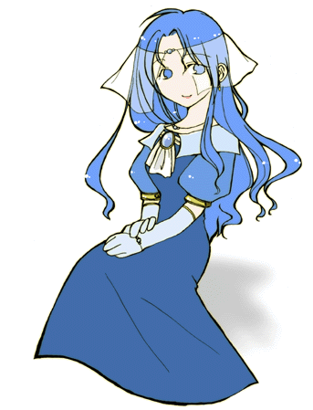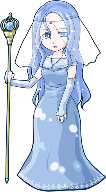 空色の髪と瞳。少しウェーブがかったロングヘア。白い肌。白い法衣にマーメイド型ドレス、ヴェール。