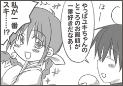 - おさげを引っ張られたり、たこ焼きにロシアンたこ焼きがしかけられたり、そんな感じと思われる。そしてユイネに叱ってもらうのがお決まりのパターン。