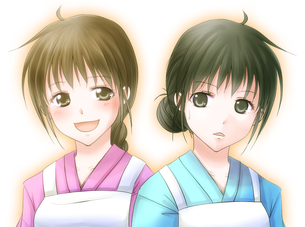 栗色の髪、黒い瞳。大きな三つ編みを水色のリボンでまとめている。桃色の浴衣にエプロンが基本。