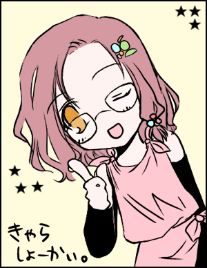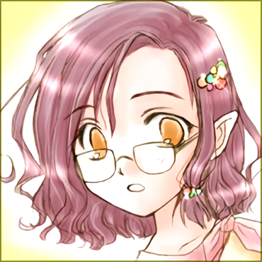 小豆色の髪、オレンジの瞳。ウェーブのボブヘア。左側こめかみとサイドに貝殻の髪飾り。