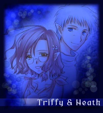 - 幼馴染でもあり、昔からいつもヒースを連れて(半ば強引に)あちこち連れまわしていた。トリフィ曰く「この世の何よりも大切」。優しい所もいざという時に頼れる所もふわふわの髪も全部好きだが一番好きなのは照れている時の笑顔。愛を告げるのはいつもトリフィからだが、穏やかに大切にしてくれている事もきちんと感じている。バカップルのようでいて、付き合いが長いだけに熟年夫婦のように呼吸はぴったり。