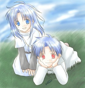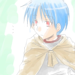 空色の髪、赤い瞳。ショートヘア。色白でやや女顔、年齢よりも幼く見えるが、基本はどこにでもいるようなちょっと華奢な男子。旅人服+マント、少し大きめのウエストポーチ。