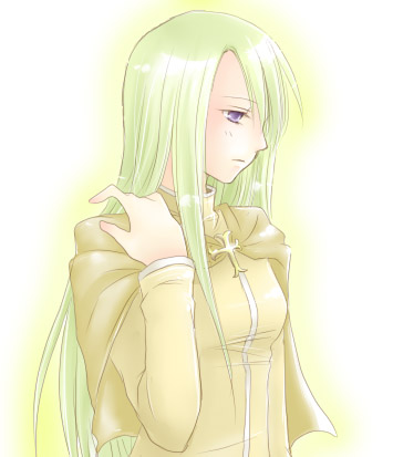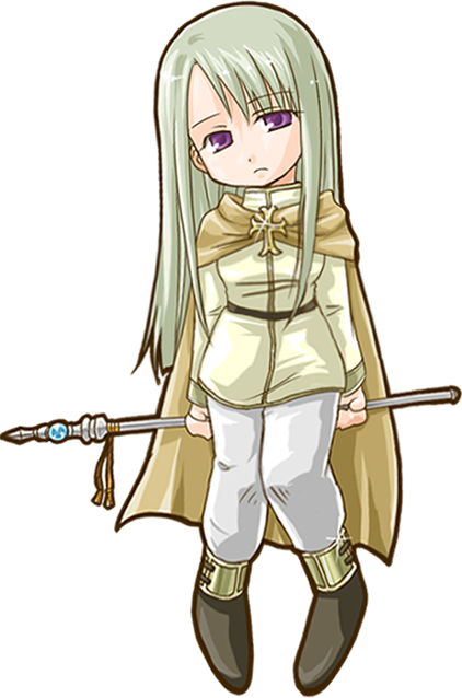 - 14歳の蒼騎士団従軍司祭見習い。年の離れている弟である事と、これまで育った環境で辛く恐ろしい思いを共にしつつもその幼い身の心身をなかなかうまく守ることができなかったため、現在でもつい過保護になってしまう。弟が努力家であることをきちんと知っており、また自分以上に司祭としての素質があると感じているため、悩んでいる姿を見るとつい手を貸してしまいそうになるのを堪えて抑えている。離れて暮らしているため日々の様子も気になっている。