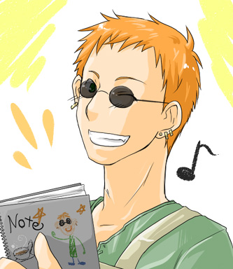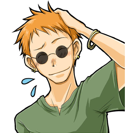 オレンジの髪、緑の瞳。短頭。人懐っこく愛嬌のある表情。長身でモデル体型。二の腕に太陽タトゥーが彫られている。