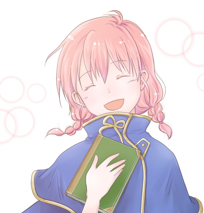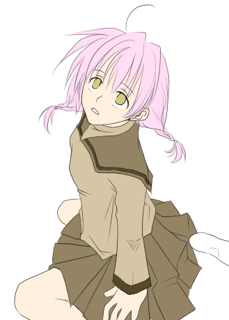 桃色の髪、金の瞳。ゆるいみつあみのおさげ。地味。顔立ちは中の上。平均より痩せ気味な体型。