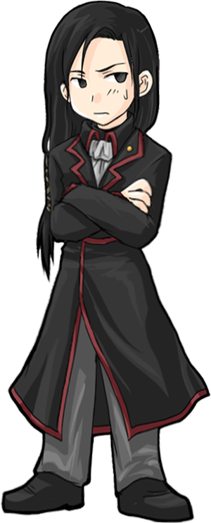 黒地に赤の貴族服や騎士服などをきちんと着こなしている。背中に刺された傷跡がある。