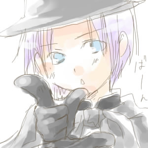 仕事中は黒い帽子、黒いマント、軽いガード。銃をジャラジャラ持っている。