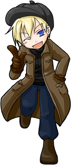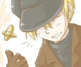金髪。青い瞳。少年のようなショートカット。にやにやとした目元で不敵な笑みを浮かべるのが基本の表情。