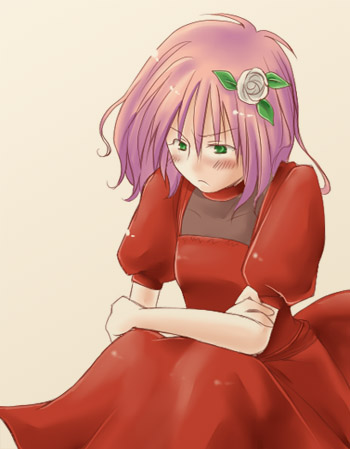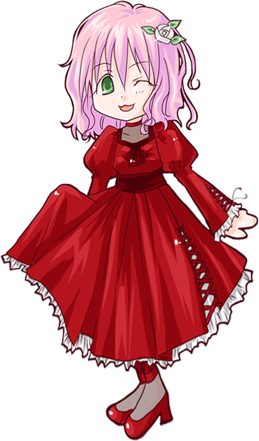 桃色の髪、若草色の目。ふわふわ軽いウェーブのセミロングに白い花のコサージュ。黙って座っていればそこそこ見られる容姿をしているが、スタイルは貧相。