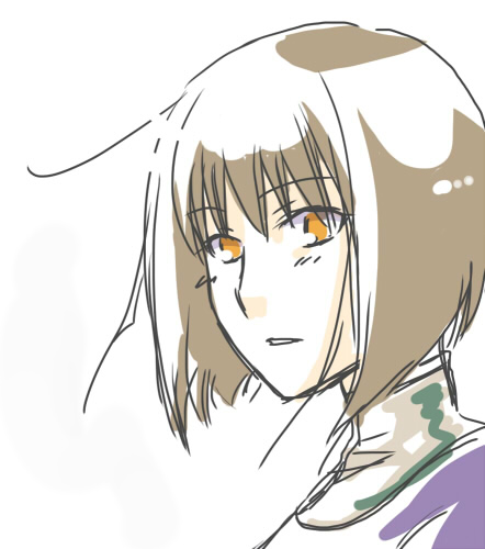 薄茶の髪、オレンジの瞳。切れ長の目で硬い表情。