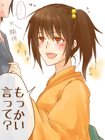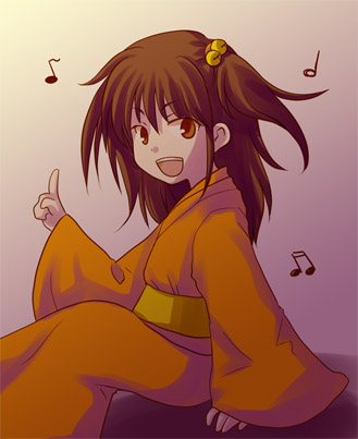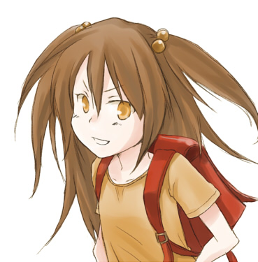 やや栗色の髪、橙の瞳。鈴の付いたゴム紐でツーサイドアップにしている。