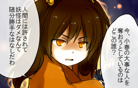 今はまだお子様なのでハッキリとした恋愛感情といったものではないが、三狸が好きで独占欲も強い。自分の方を向いてもらいたくて一生懸命に動く。