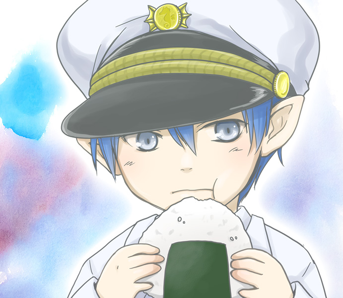 マリンブルーの髪、銀色の瞳。ネレイド特有の尖った耳と整った顔立ち、白い肌を持つ。よくはねるショートヘア。白の軍服、軍帽。